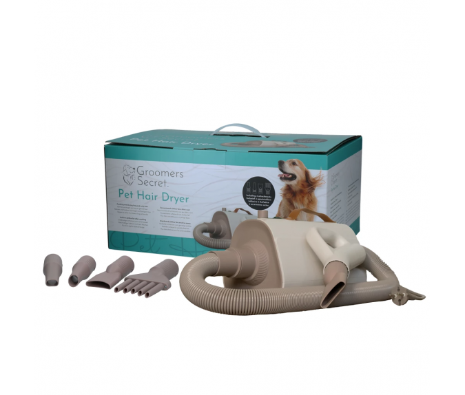 Suszarka do sierści dla psów Groomers Secret sprawi, że każdy pies będzie znów czysty i suchy! Ta suszarka jest idealna do wydmuchiwania i suszenia sierści, np. po kąpieli lub pływaniu. Można jej także użyć do usuwania z sierści zabrudzeń, takich jak piasek po plaży czy brud po spacerze w lesie.
