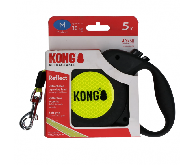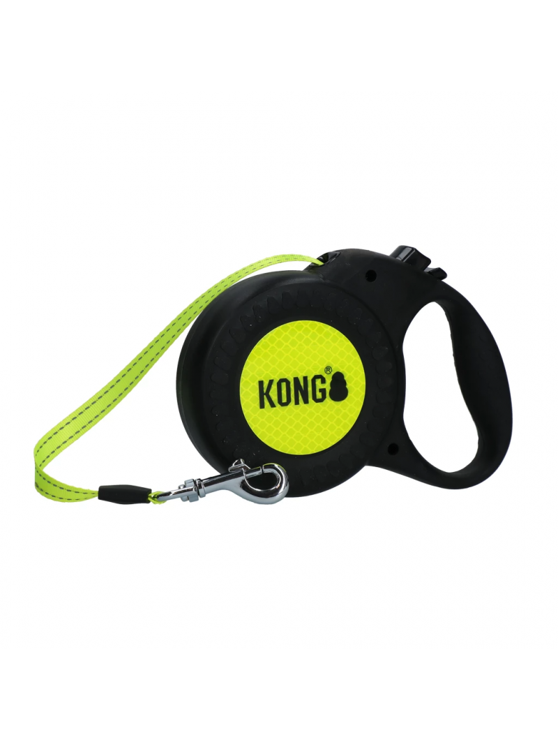 Smycze zwijane KONG wyróżniają się miękkim, wygodnym uchwytem, dzięki któremu rączka dobrze leży w dłoni. Praktyczny i przemyślany system hamowania działa płynnie podczas spaceru z psem. Jak wszystkie produkty KONG, smycze te są wytrzymałe, solidne i wykonane z mocnych materiałów.