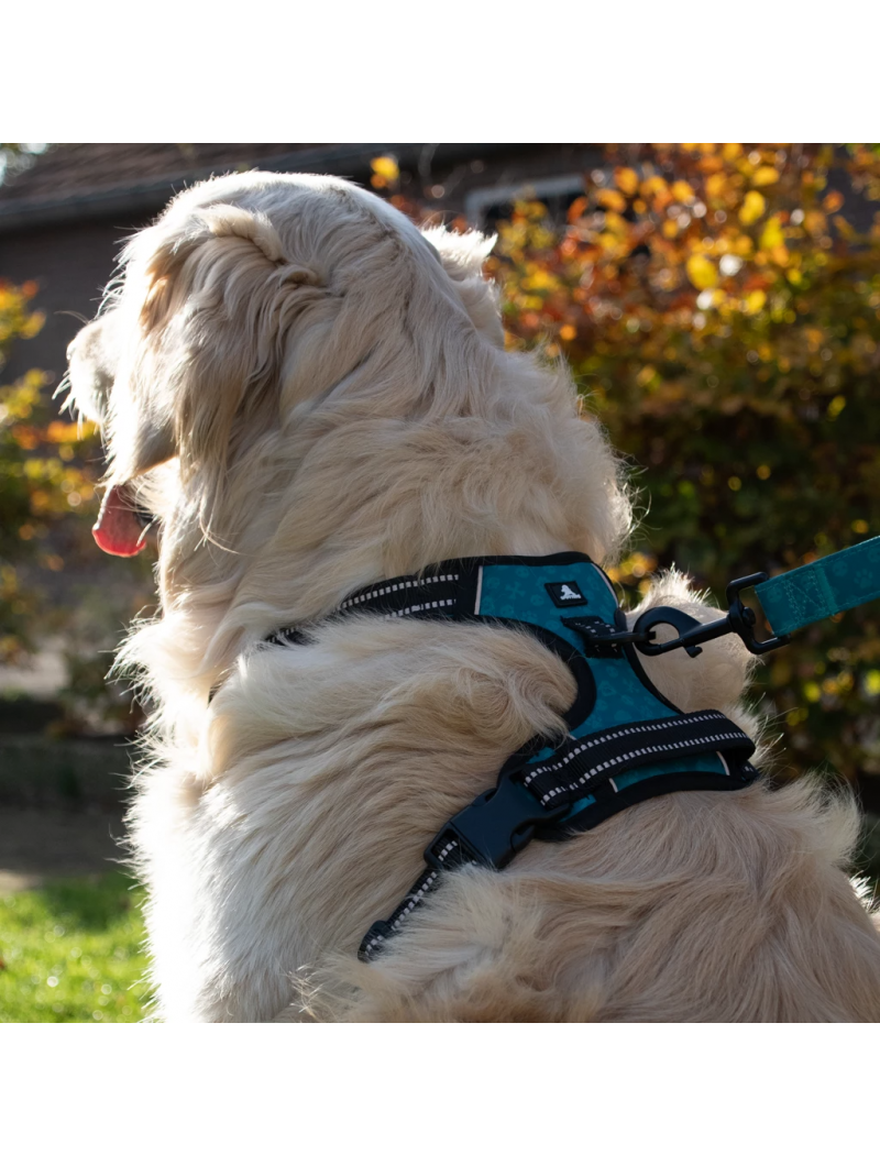 Ta uprząż dla psa została zaprojektowana specjalnie we współpracy ze specjalistami. Uprząż NO-Pull (anti pull) wykonano z materiałów klasy premium i stworzono tak, aby równomiernie rozkładała nacisk na ciało psa, zapewniając maksymalny komfort. Uprząż ma 4 punkty regulacji, dzięki czemu można ją idealnie dopasować. Zastosowanie materiałów używanych zwykle w akcjach ratunkowych lub wspinaczce górskiej gwarantuje najwyższą jakość wykonania.
