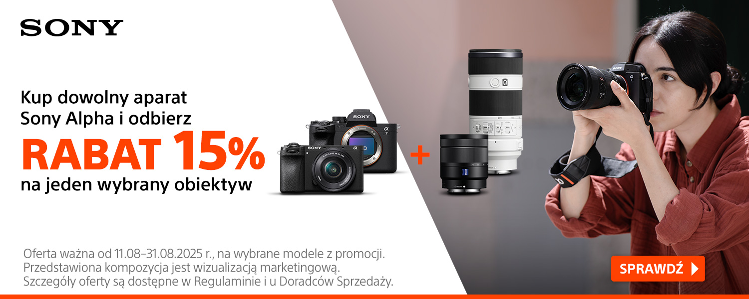 Na stanie Obiektywy APS-C Obiektyw Sony E 15 mm F1.4 G | SEL15F14G SEL15F14G.SYX 3 499,00 ZŁ Typ: StałoogniskowyOgniskowa [mm]: 15Średnica filtra [mm]: 55Maksymalna przysłona: 1.4 Do koszyka