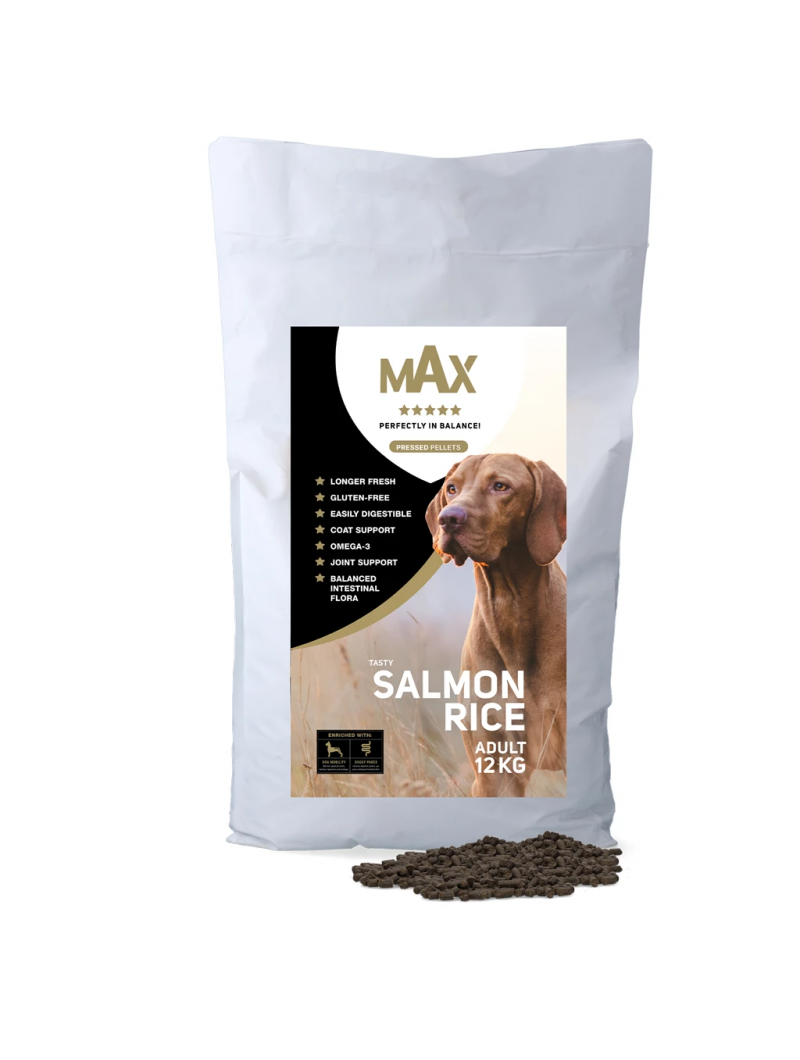 Karma prasowana z łososiem i ryżem dla dorosłych psów Max Adult 12 kg